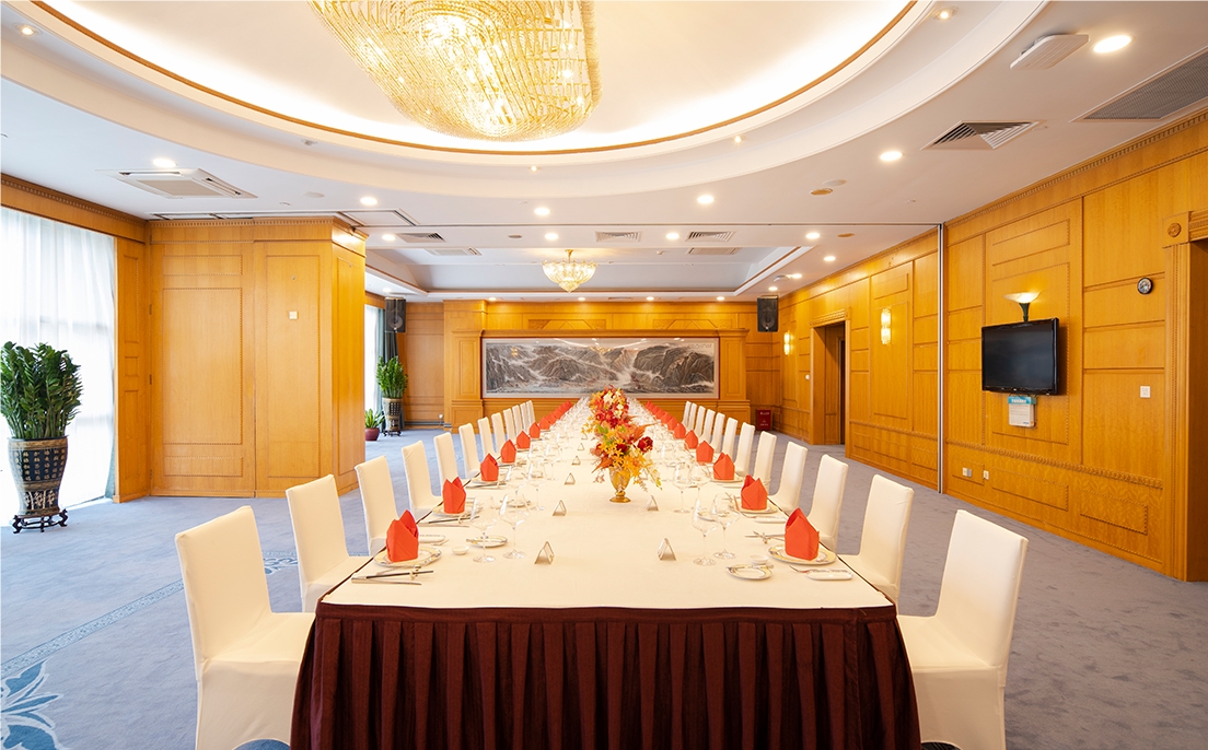 Located on the second floor of Building A, the Yellow River Room is a multi-purpose hall for holding various small-scale conferences, banquets, meetings, drinks parties and other activities. Covering an area of 200 square meters, it is exquisite, elegant and solemn,and can bedivided into three separate rooms, which is convenient and practical.