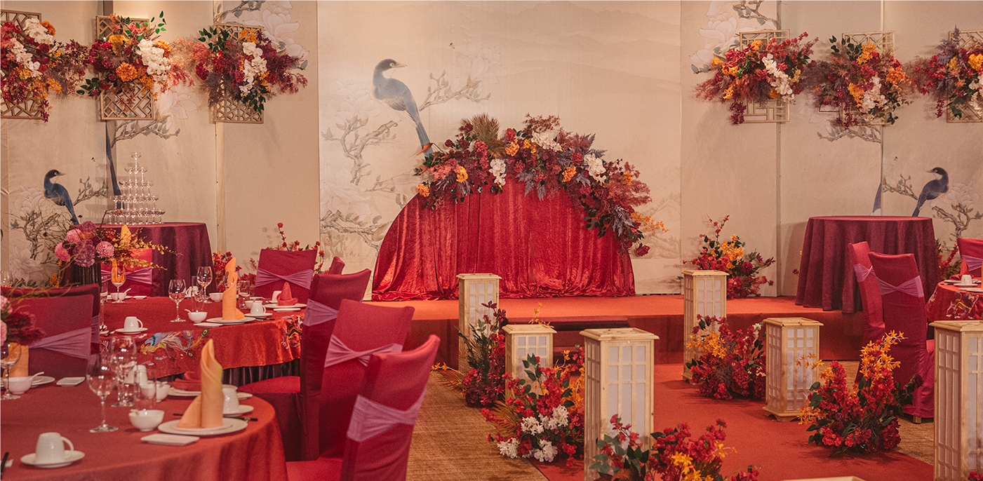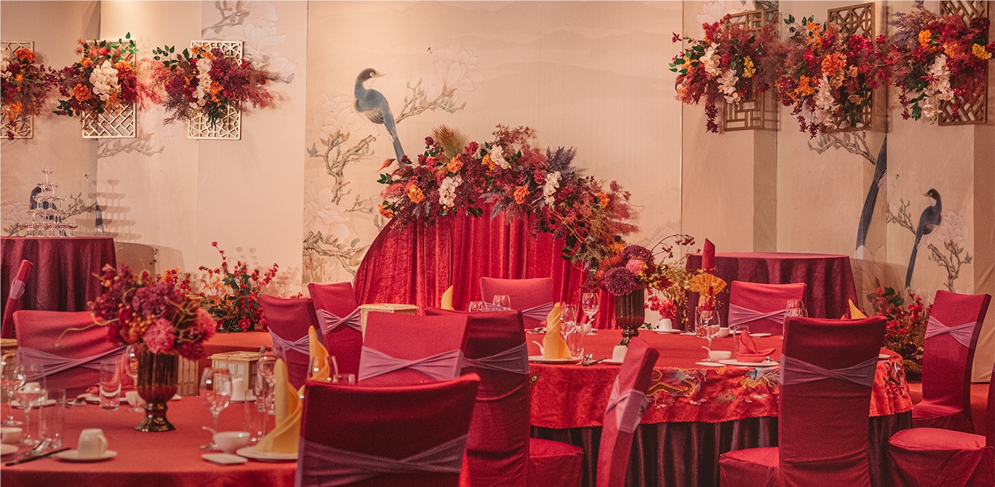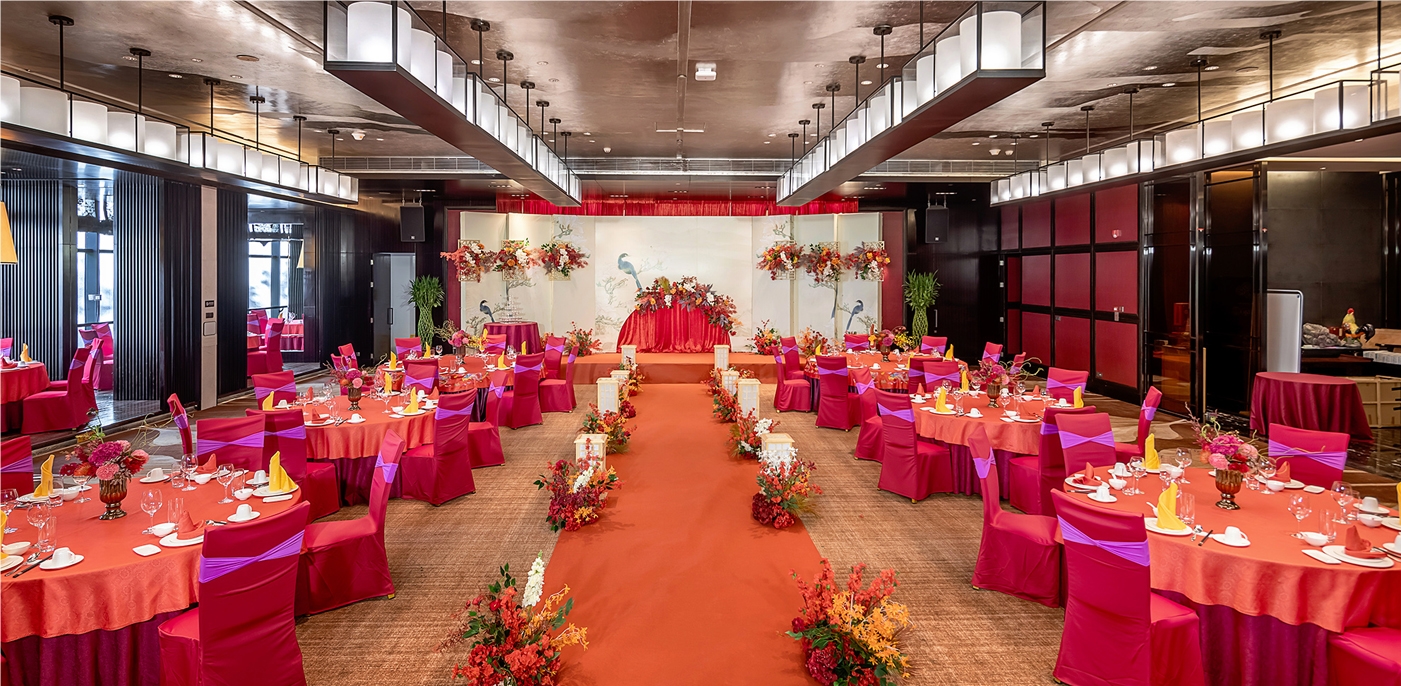 Huaixiang Court Chinese Restaurant, located on 1F, Building A and covering an area of more than 400㎡, specially invites senior cooking technicians, focuses on traditional Chao-Cantonese cuisine, Hunan cuisine, Huaiyang cuisine and other delicacies, presents a perfect combination of classical and fashionable charm on the whole. The unique space design is impressive and enhances the appreciation. Transparent french window can take in panoramic view of beautiful scenery outside the window. With low-key sense of luxury, it is suitable for holding 10 to 12 tables of wedding that is full of petty bourgeoisie taste.